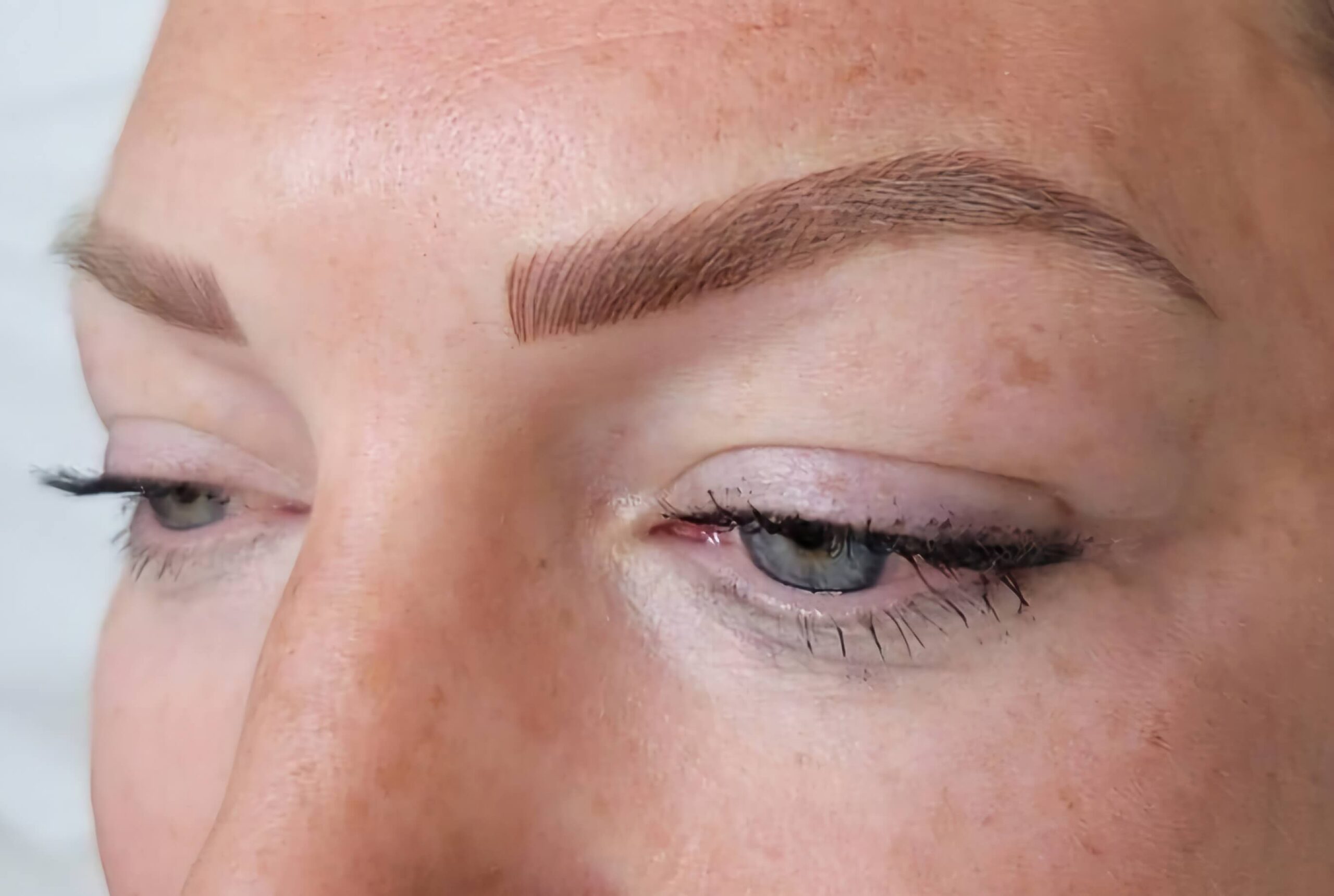 A delicate eyeliner tattoo using tiny needles to deposit pigment between the lashes giving the illusion of a lifted eye and fuller lashes